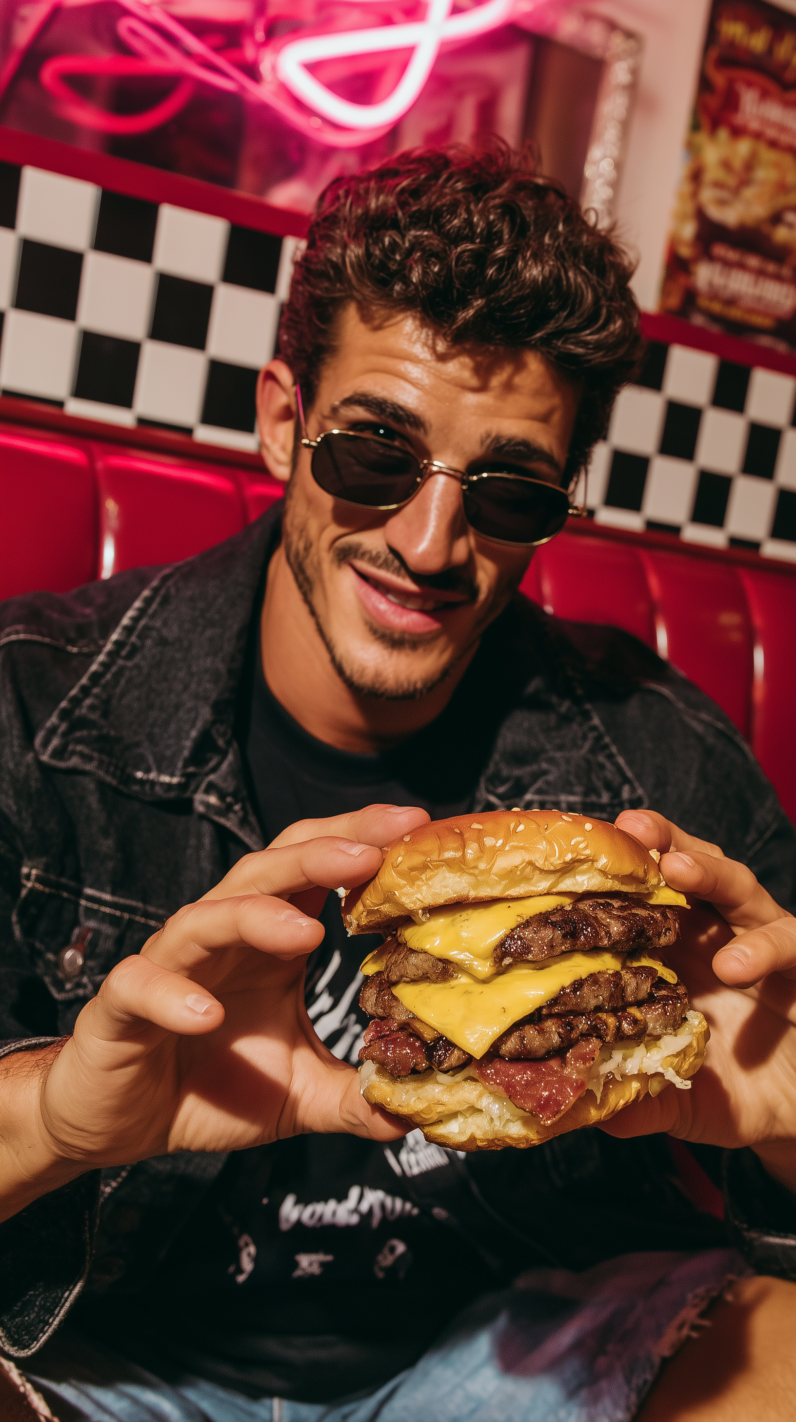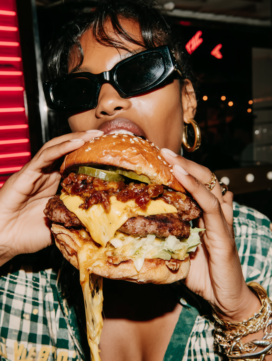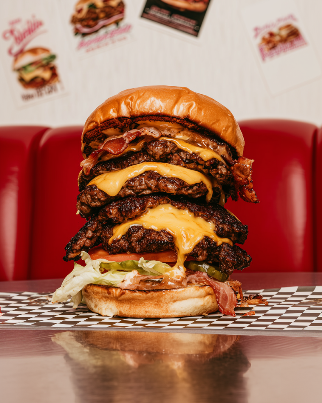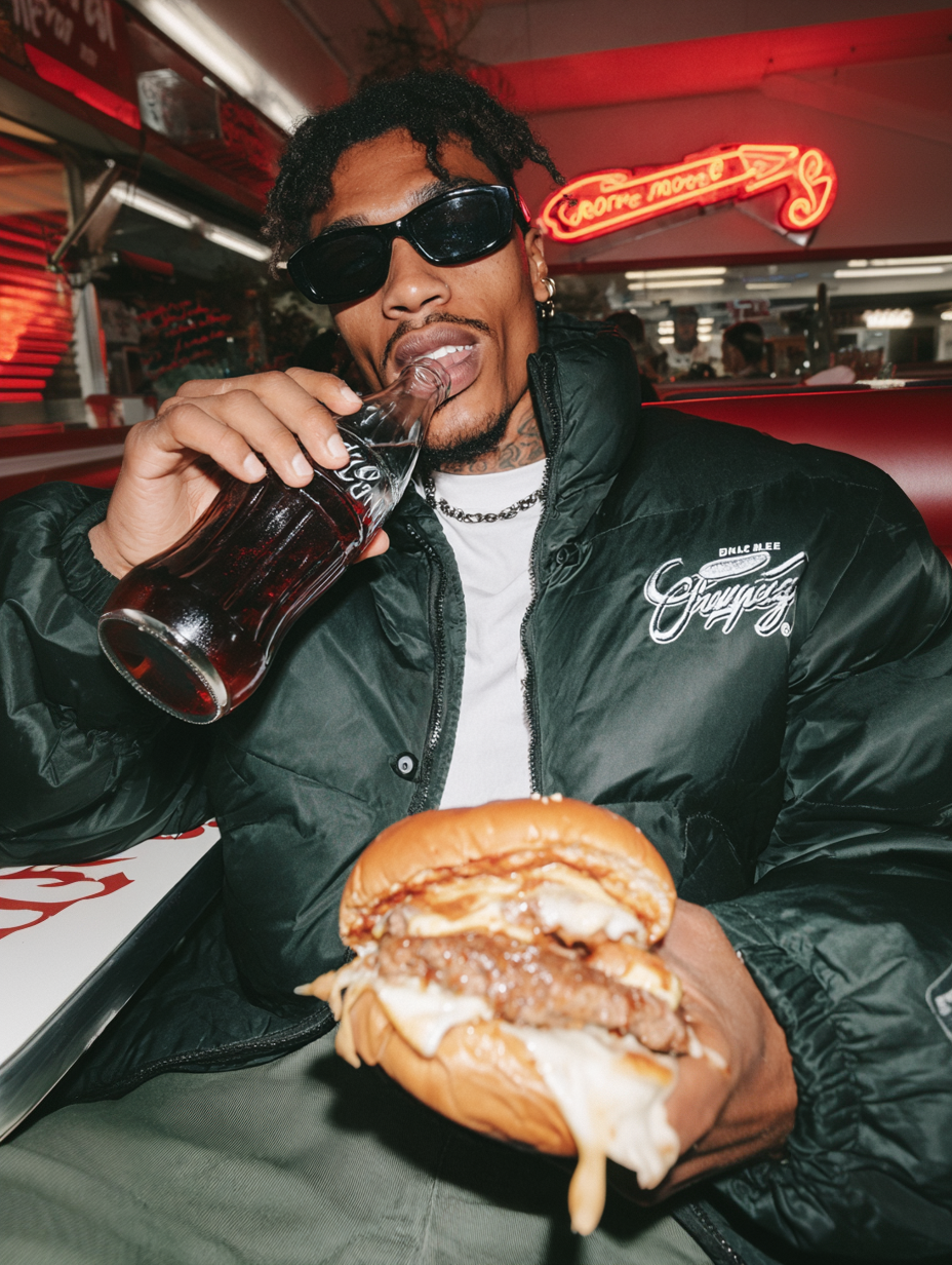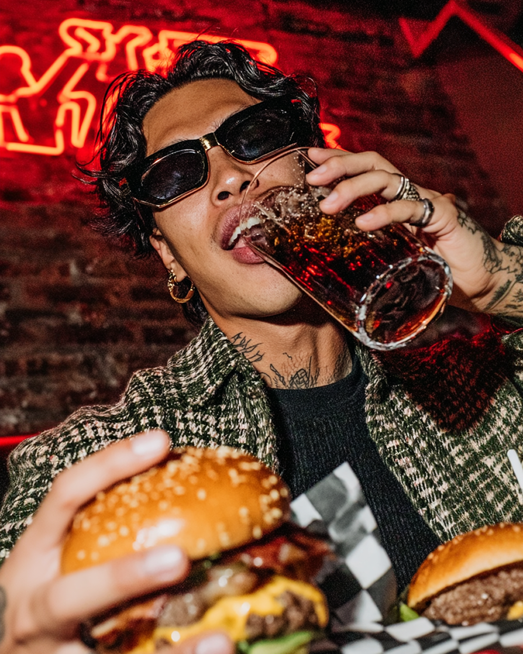 촬영 없이도 실제처럼 구현한 AI 버거 브랜드 비주얼로, 음식의 질감과 조명을 사실적으로 연출한 프로젝트입니다.
